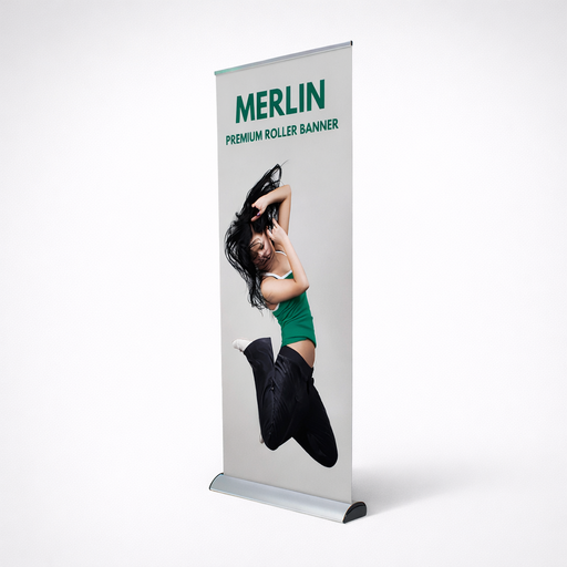 Merlin Roller Banner is a premium display with a unique cassette system that makes swapping graphics quick and easy, perfect for brands that update...