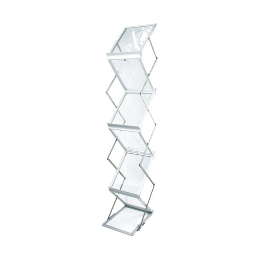 Six double-sided A4 acrylic shelves Anodised aluminium unit Fully collapsible for easy transportation Includes carry case Weight 6.5kg excluding ...