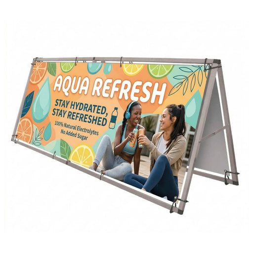 Our popular PVC outdoor advertising banners are a great cost-effective solution for raising awareness and can be secured in place using the eyelets to many surfaces including railings, walls as well as pre-built banner holders such as A-frames. These are great for creating an advertising buzz around an event, to promote new products or services or just give helpful information to your customers, such as your opening hours.