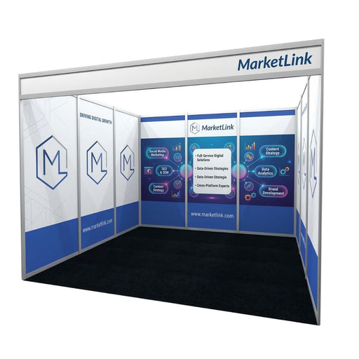 Our custom-printed PVC panels attach directly to your shell scheme walls with Velcro, giving you a seamless, professional look that's as easy to pack down as it is to put up.